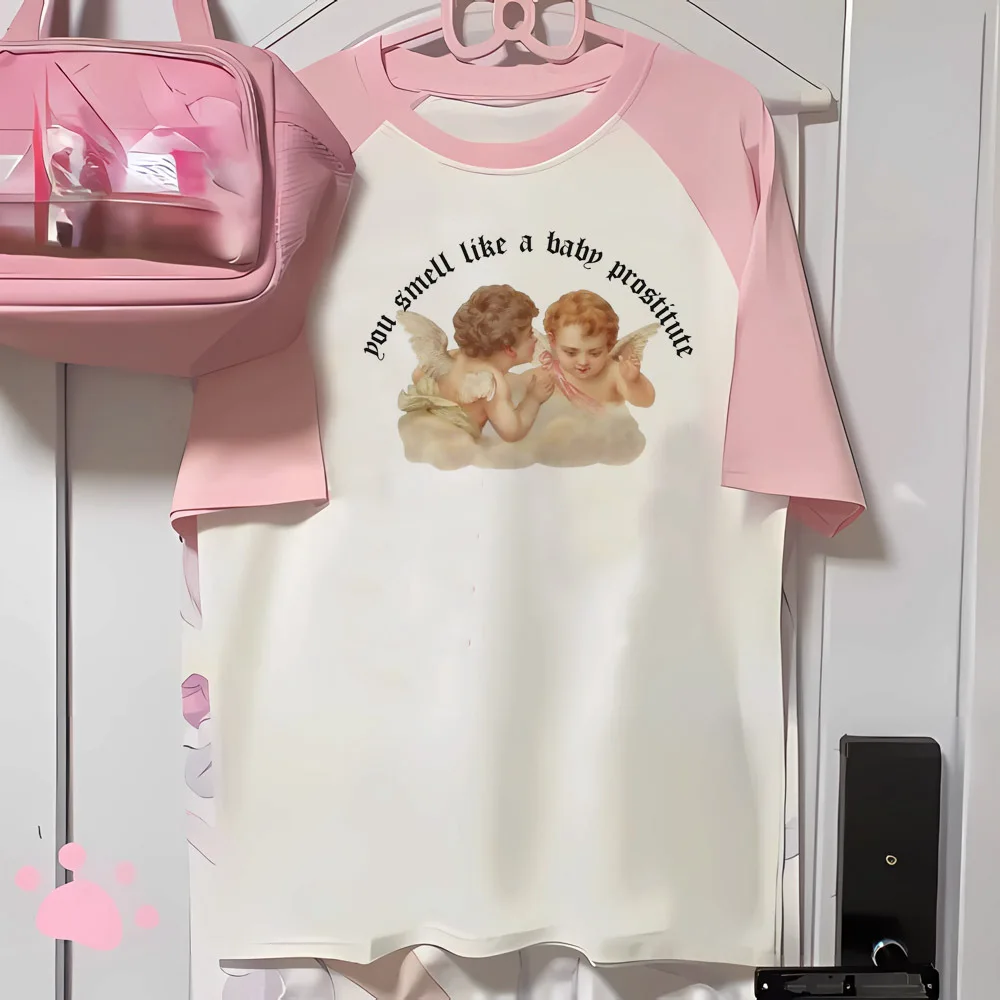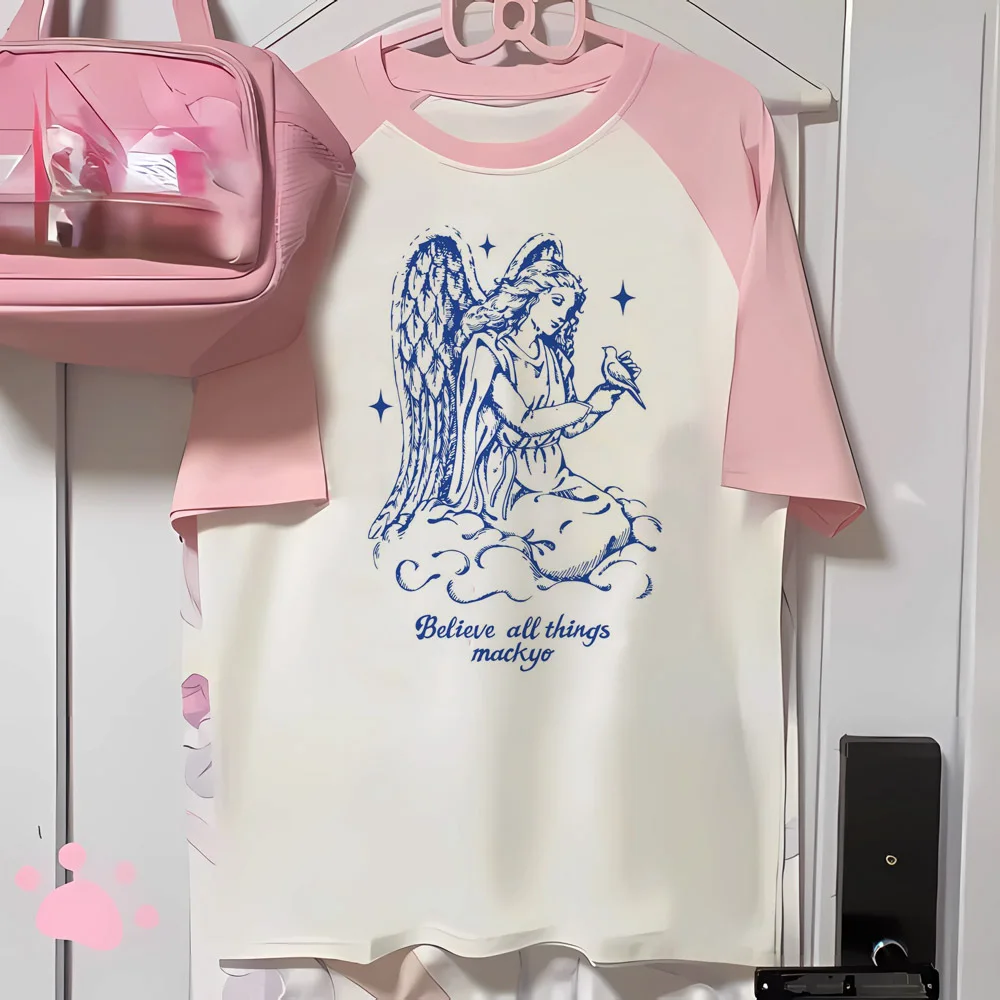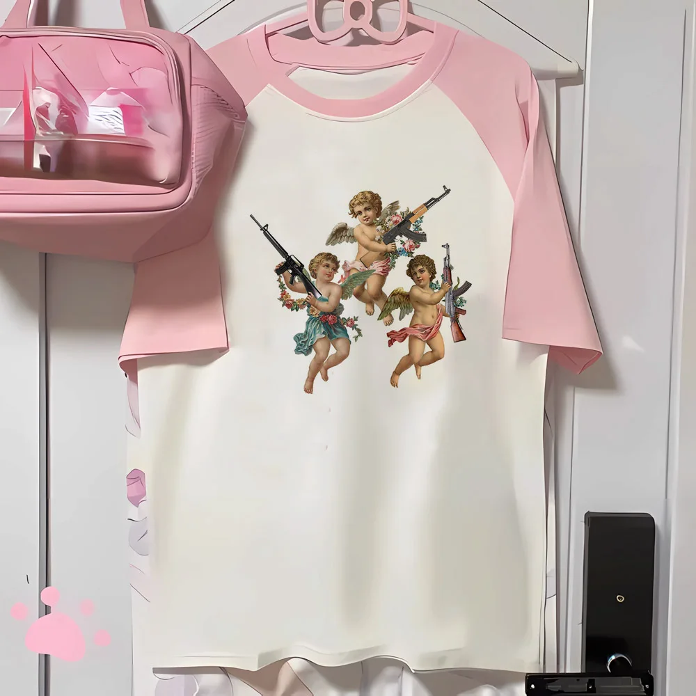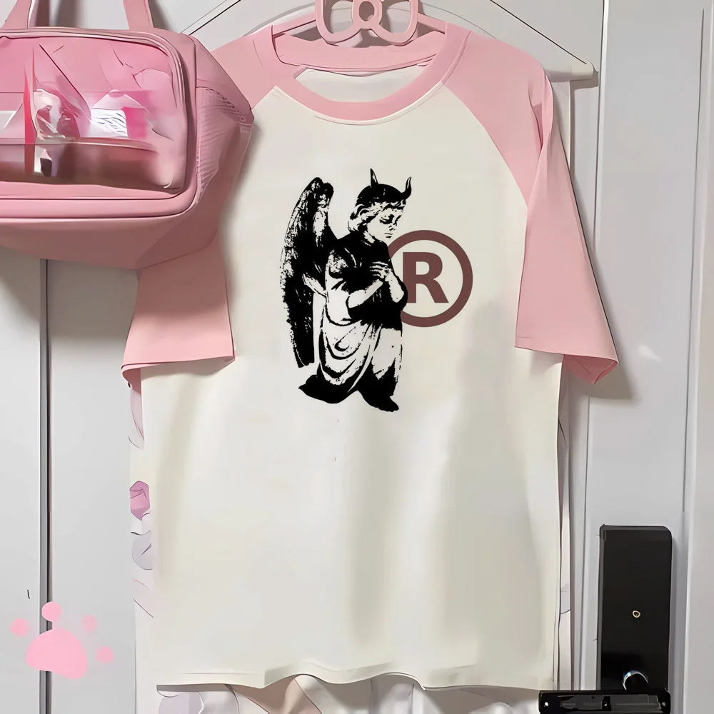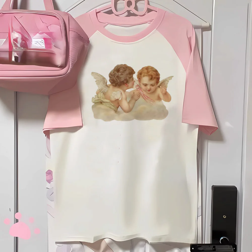 Angle Funny t-shirts women crew neck athleisure Tee female designer anime manga clothing
