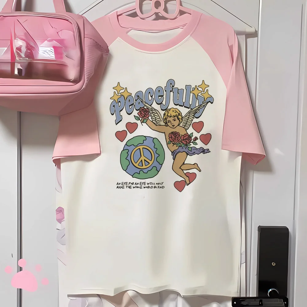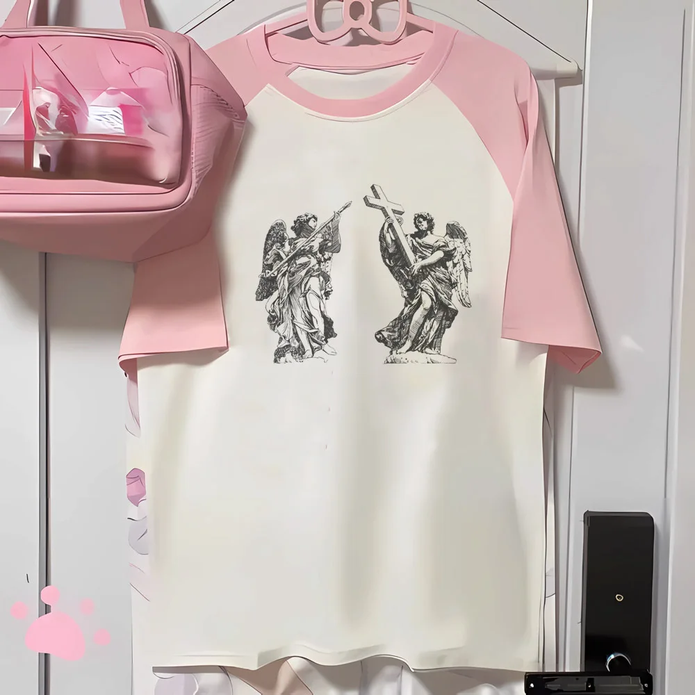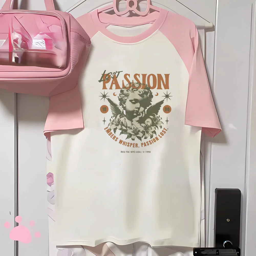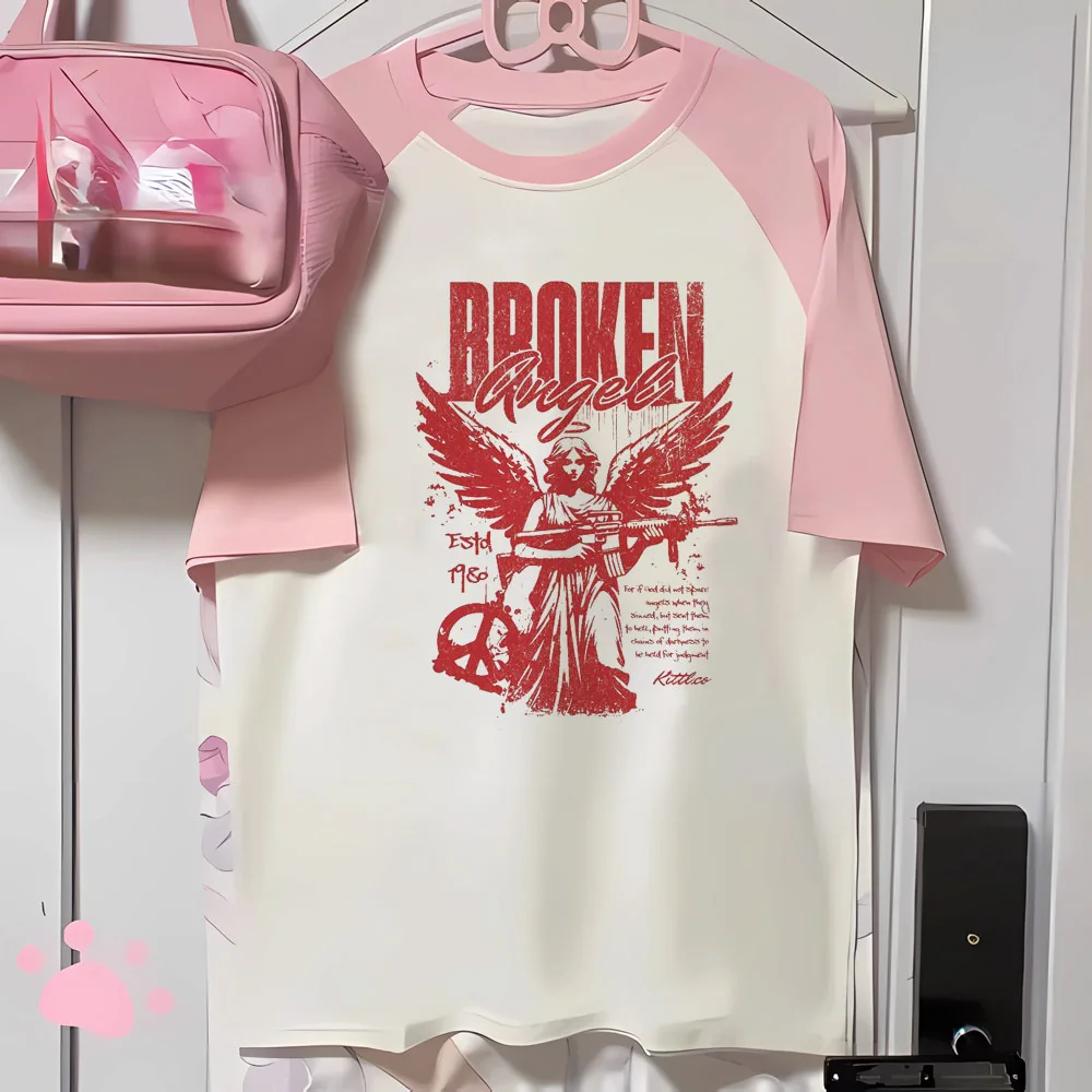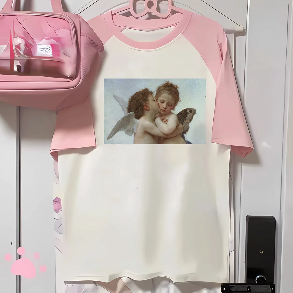 Angle Funny t-shirts women crew neck athleisure Tee female designer anime manga clothing
